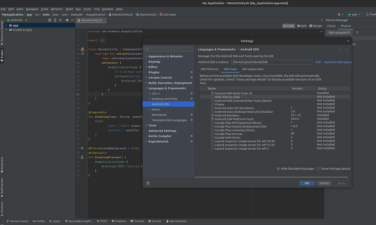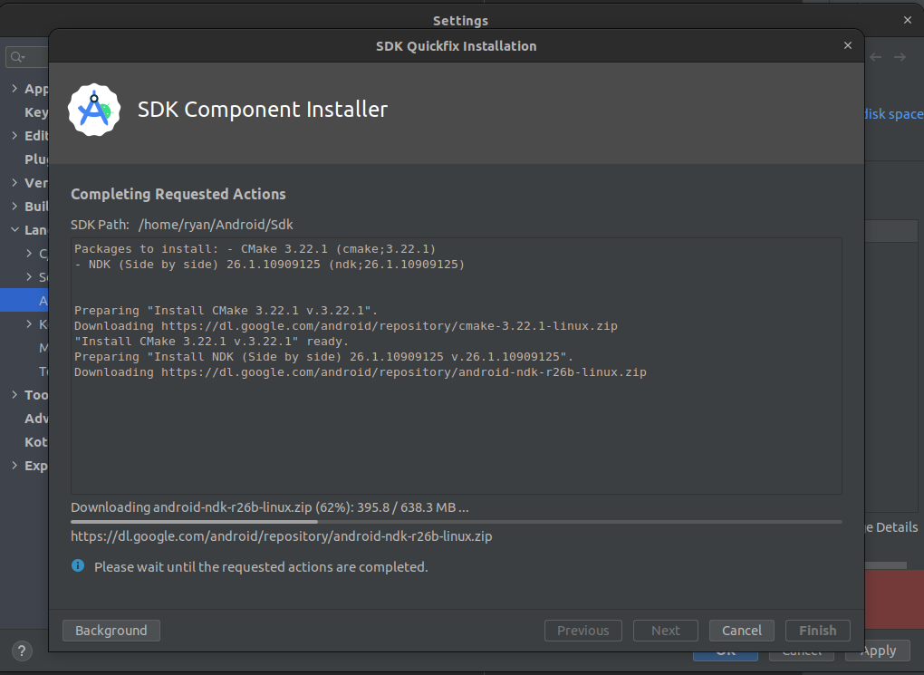 Once this is finished installing, you can now get the path to the Android NDK. For me, this was installed at